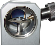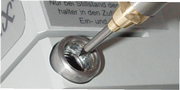 ![]() | Durch ein Sichtfenster können Schleifvorgang beobachtet und Schleifdruck kontrolliert werden. Damit soll verhindert werden, dass die Elektrode glüht und die Diamantscheibe schnell verschleißt. |