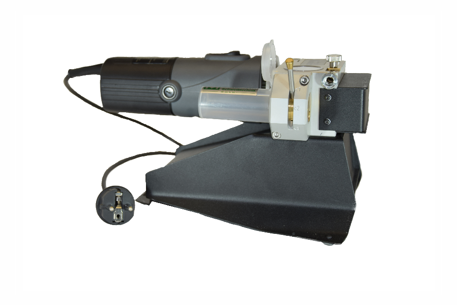 ![]() | Ein stabiler Standfuß (ohne Zubehör) stabilisiert das WTG50 während des Trennvorgangs. |